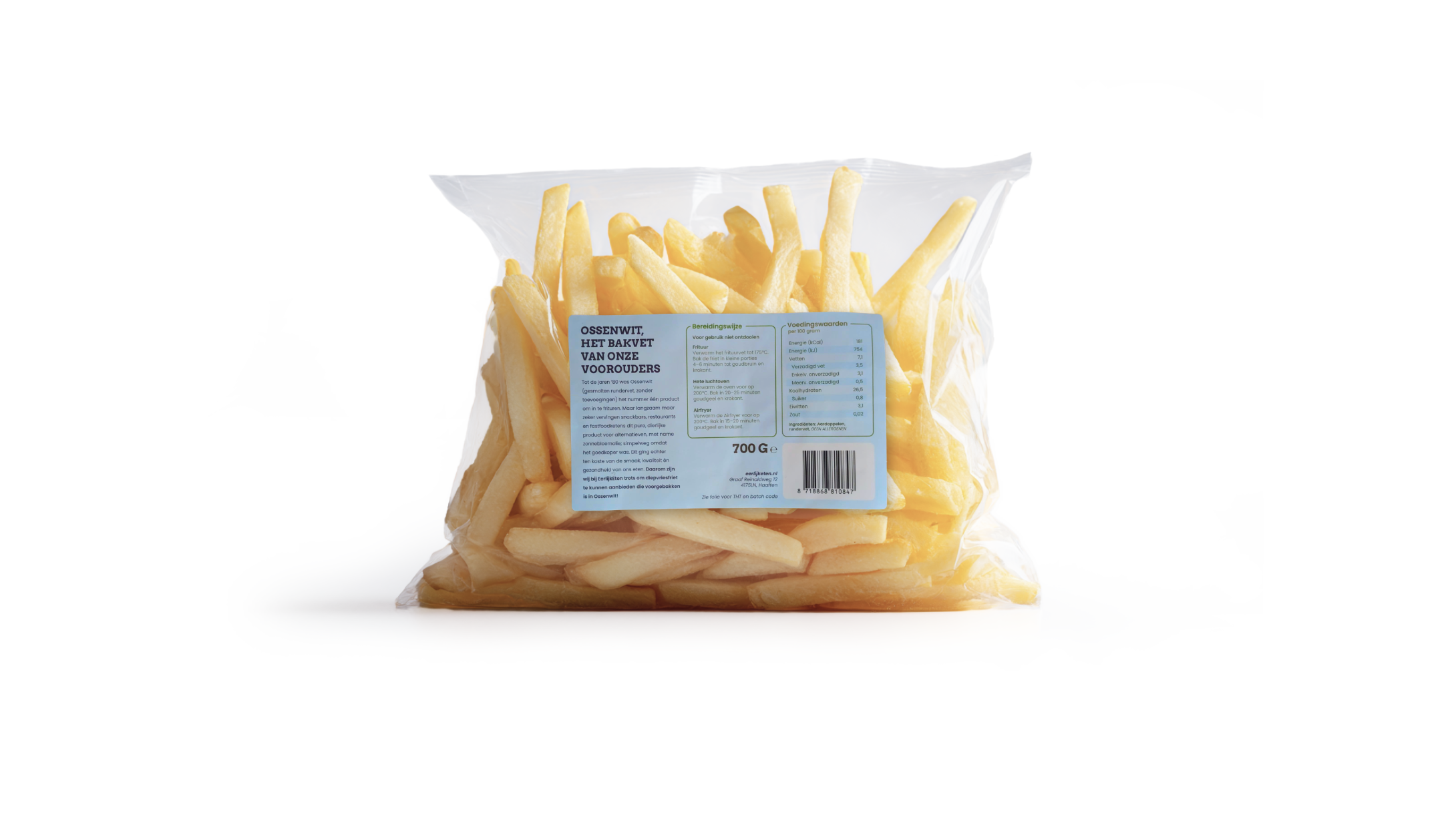 Voorgebakken in puur ossenwit, voor de ultieme volle, authentieke smaak. Vrij van zaadoliën! Af te bakken in frituurpan, oven of airfyer.