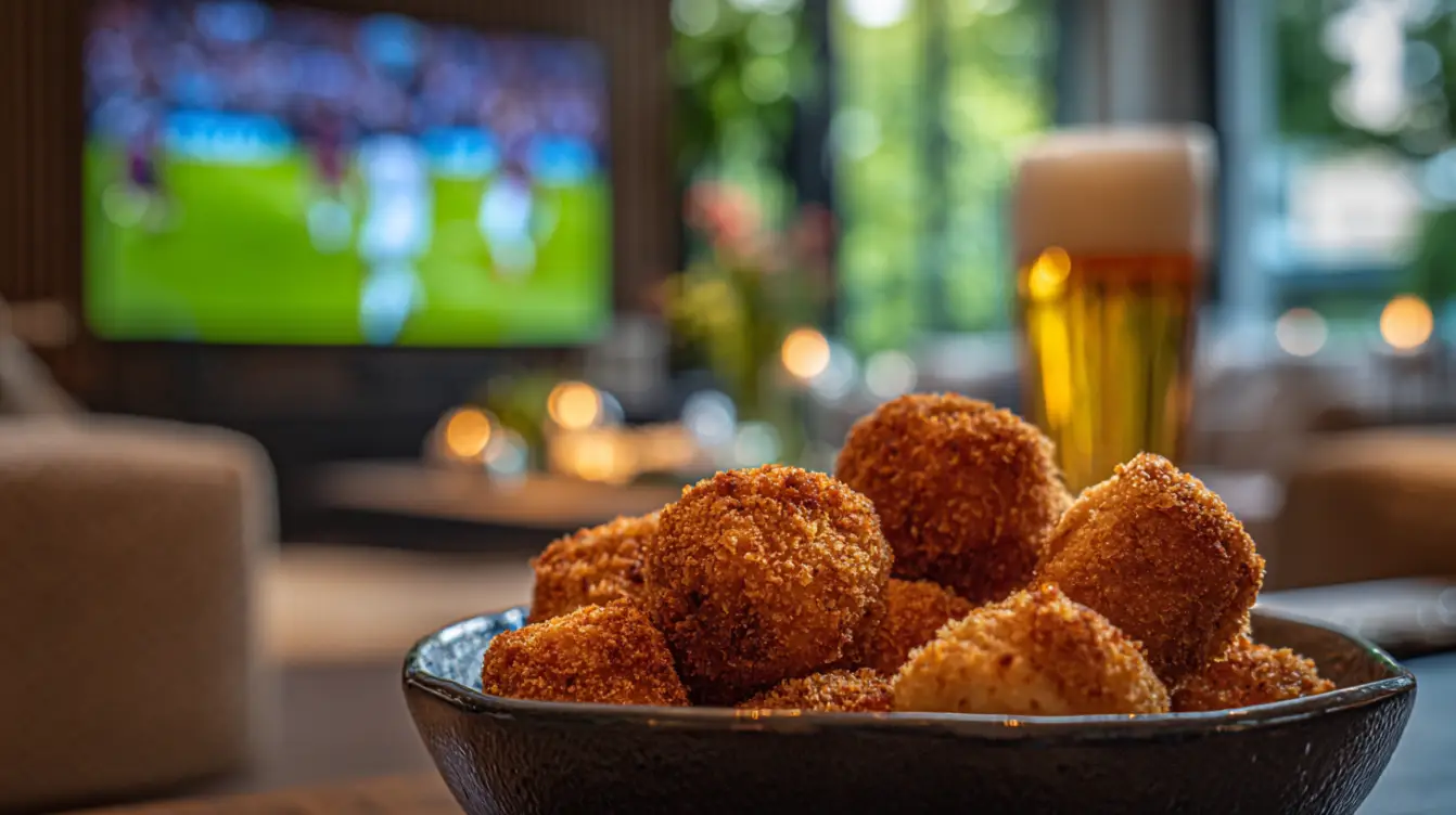 Wat ooit begon als een spontaan idee tijdens een avond borrelen, groeide bij Jan Roos uit tot een echte smaaksensatie: een knapperig balletje gevuld met kaas, ham en sambal. De combinatie is simpel maar doeltreffend: romige kaas die zachtjes wegsmelt, hartige ham die diepte toevoegt en een subtiele pittigheid van sambal die het geheel laat knallen. Dit alles verpakt in een krokant jasje dat zorgt voor de perfecte bite. Jan Roos besloot er geen ingewikkeld verhaal van te maken, maar gewoon een snack die werkt en die je gasten verrast.