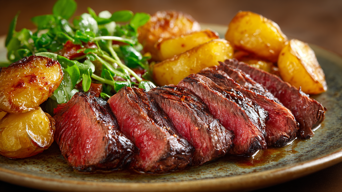 Een Bavette steak is een buitengewoon smakelijk en mals stuk rundvlees afkomstig uit de vang van het dier, gekenmerkt door zijn magerte, grove, pure structuur en rijke, volle smaak.